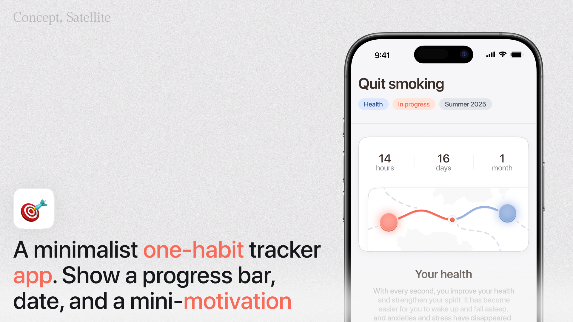 A minimalist one-habit tracker app. Show a progress bar, date, and a mini-motivation. As much space and minimalism as possible.