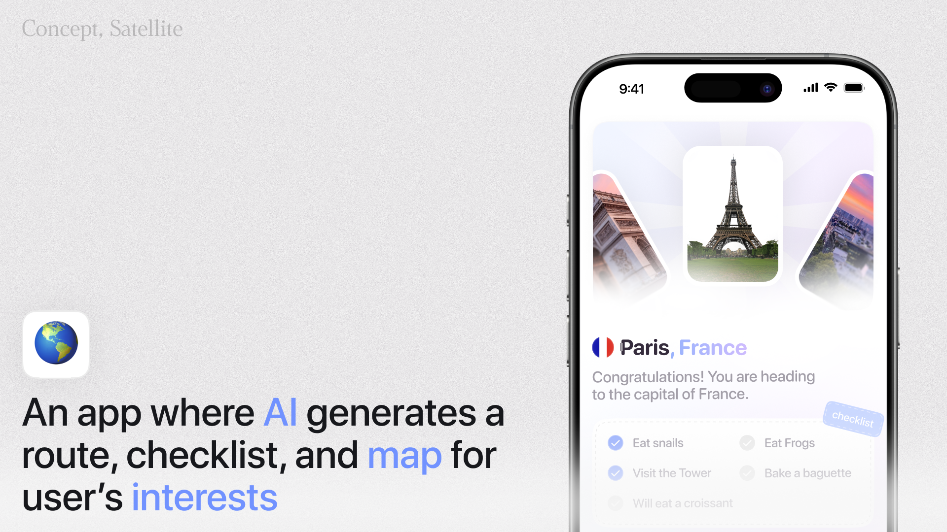 An app where the user enters "I want to go to the mountains" or "I want to go to the sea," and AI generates a route, checklist, and map.