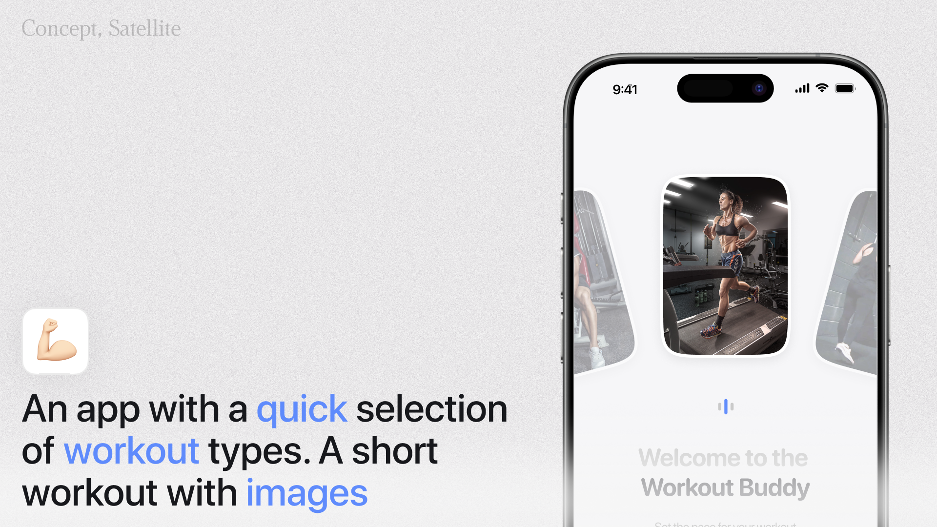 An app with a quick selection of workout types. A short workout with images is provided in response. The interface is clean and user-friendly.