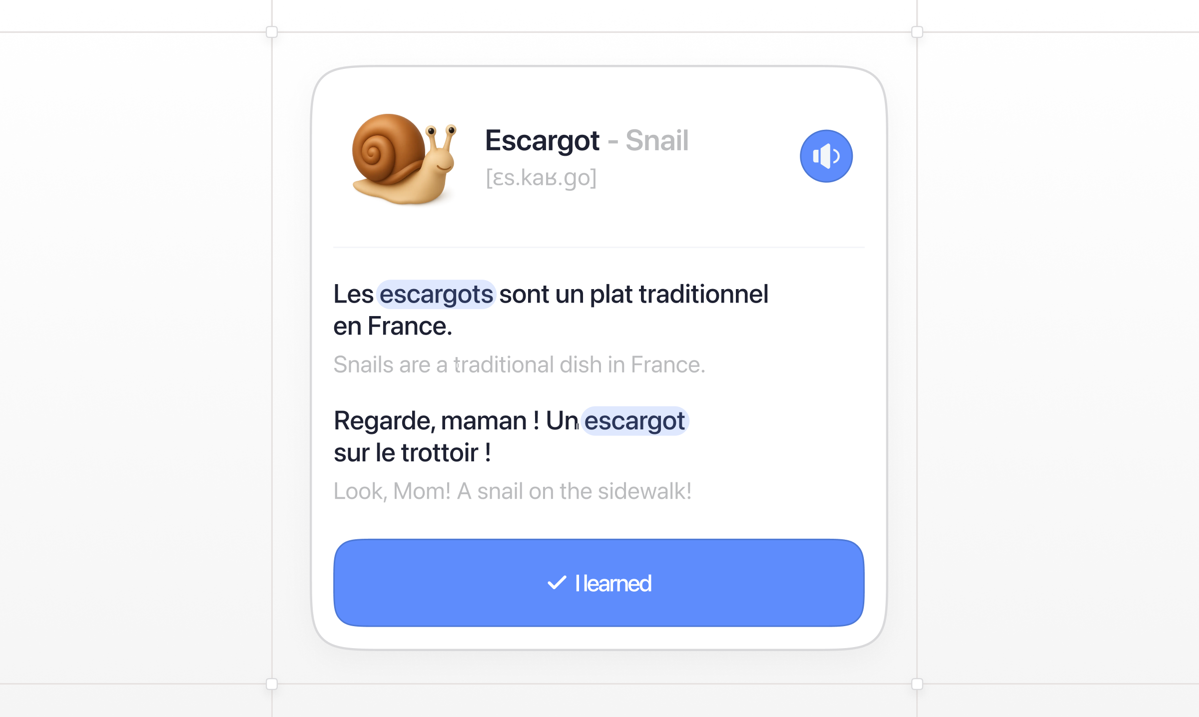 An app with three new words of the day, their translations, pronunciations, and examples. Illustrations to make learning fun.