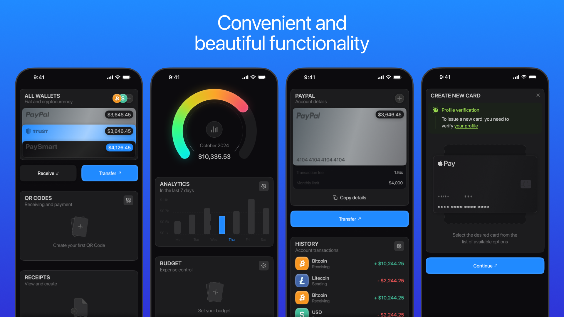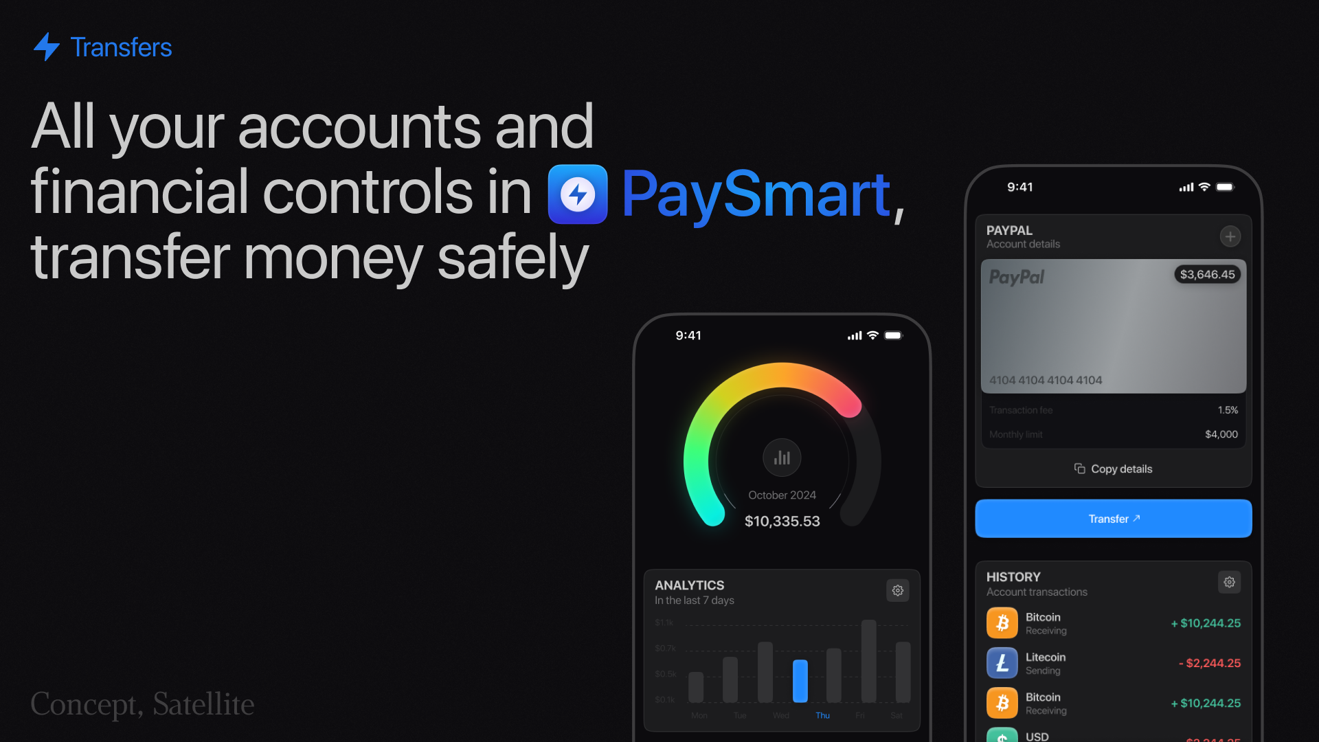 Pay Smart is an application for creating accounts of various payment systems in one place. The app will help you control your finances and make transfers in one place.